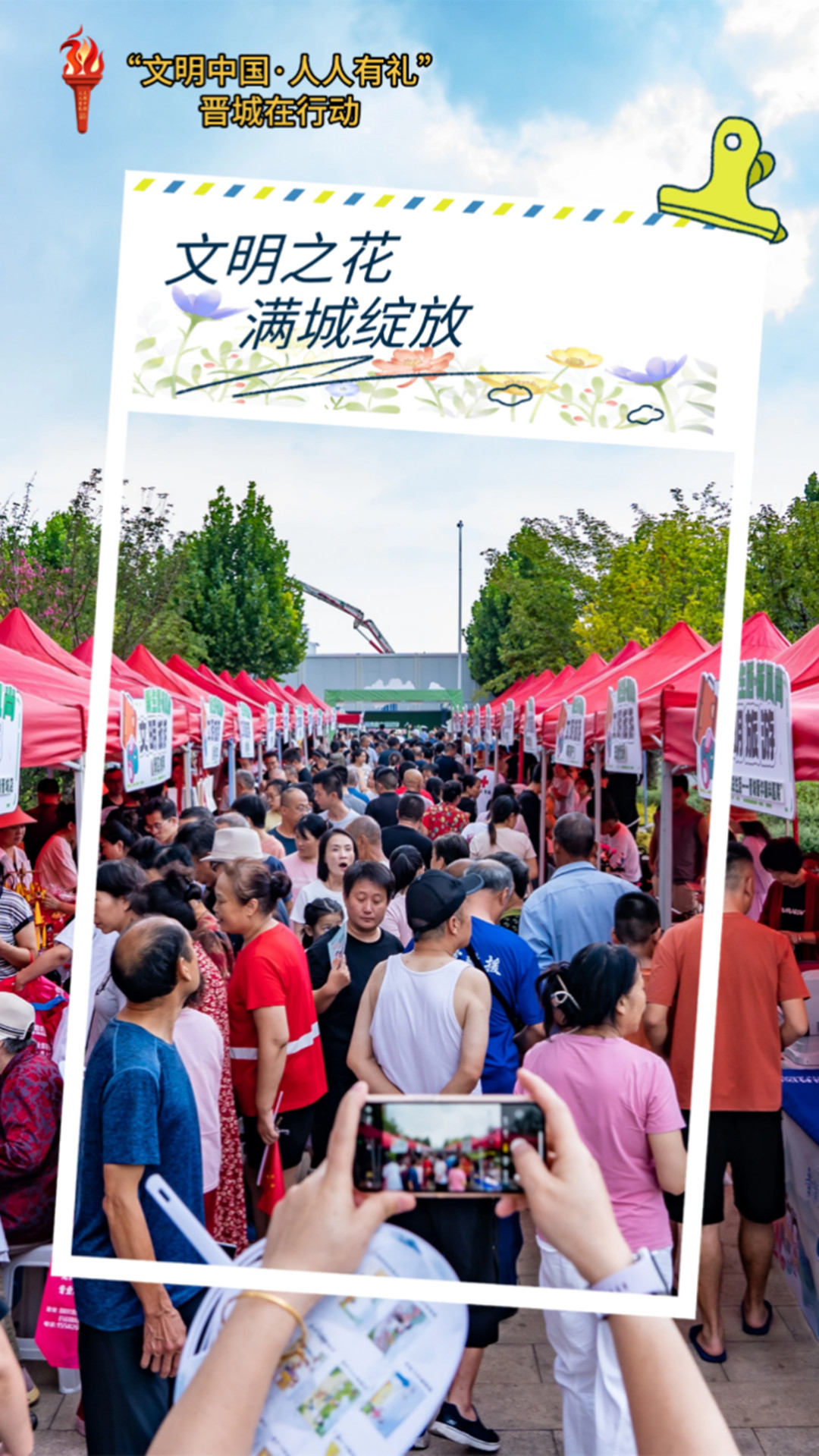 近日,由晋城市委宣传部、晋城市文明办和市直相关单位主办,晋城市融媒体中心、城区区委宣传部、城区新时代文明实践中心承办,“新生活·新风尚——晋享文明风尚、共建城市文明”9场文明集市主题活动在晋城市区公园广场、居民社区火热开市,累计设立主题摊位近300个,献上精彩文艺节目演出近百个,参与互动群众万余人次,在市区掀起了一场“倡导文明风尚,共建城市文明”的活动热潮。