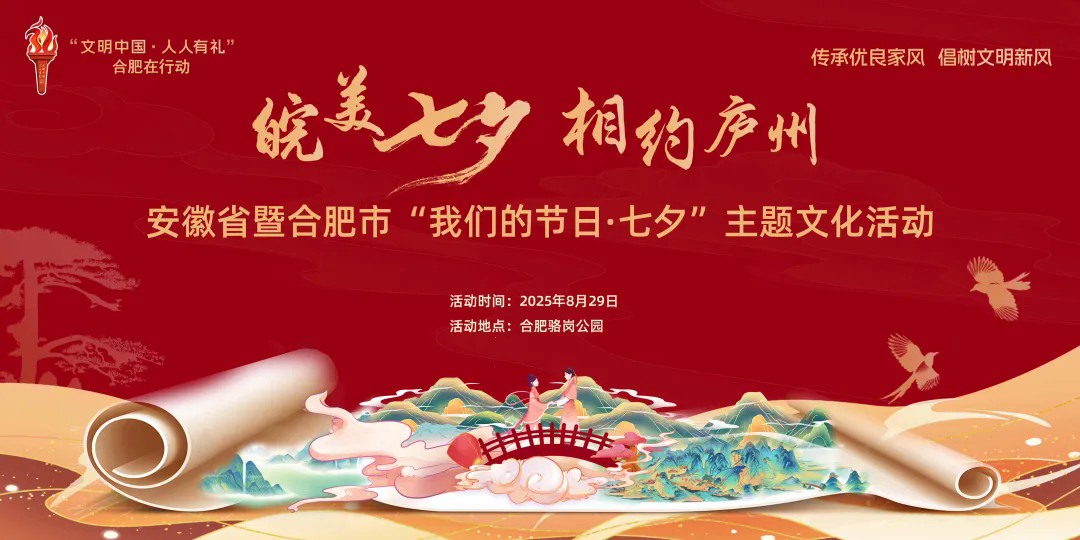 皖美七夕,相约庐州。近日,2025年安徽省暨合肥市“我们的节日·七夕”主题文化活动在合肥市骆岗公园举行。本次活动由安徽省精神文明建设办公室、安徽省民政厅、安徽省文旅厅、共青团安徽省委、安徽省妇联、安徽省文联主办,合肥市委宣传部、合肥市民政局、合肥市文旅局、共青团合肥市委、合肥市妇联、合肥市文联承办。