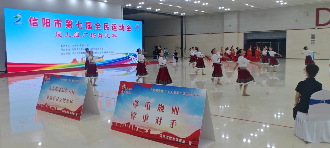 为全面贯彻落实全民健身国家战略,广泛开展全民健身活动,近日,河南省信阳市第七届全民运动会成人组广场舞比赛开幕式在信阳市百花会展中心举行。本次活动同步融入“‘文明中国·人人有礼’信阳在行动”主题传播内容,在呈现精彩体育赛事的同时,积极倡导文明参赛、文明观赛的新风尚。