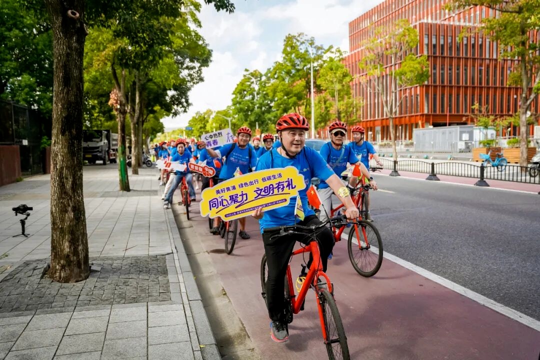 数百名市民代表组成14支骑行方阵,共同用车轮丈量美丽黄浦,用行动倡导绿色风尚,共筑城市文明共同体。
